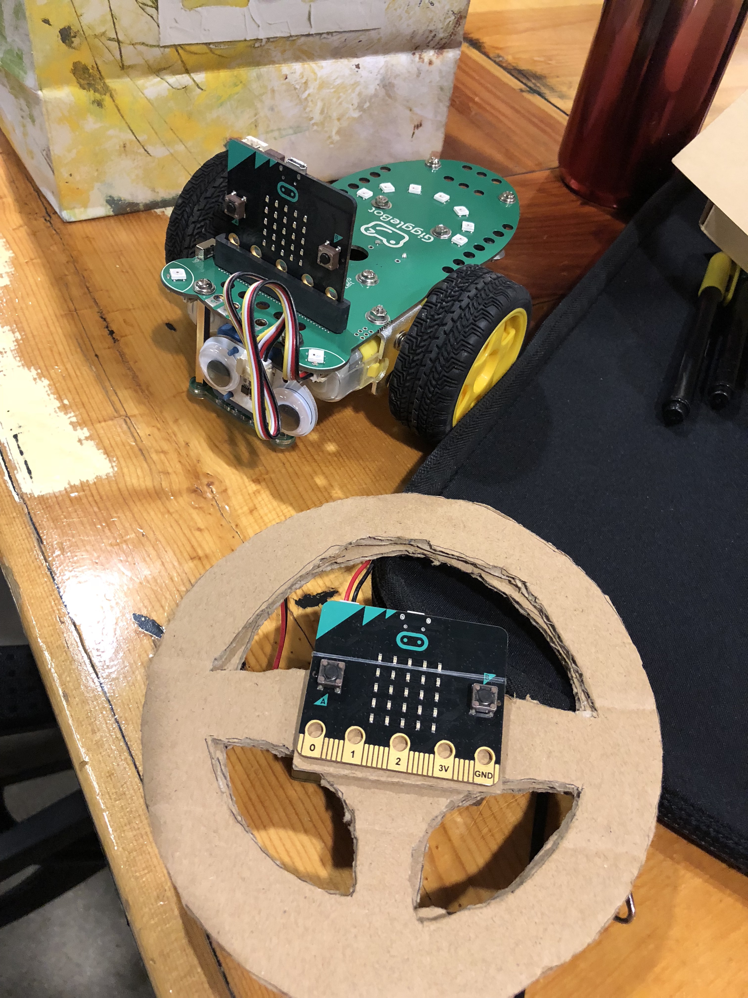 But it works pretty well, below it the video that I use the steering wheel to control the Artbot.