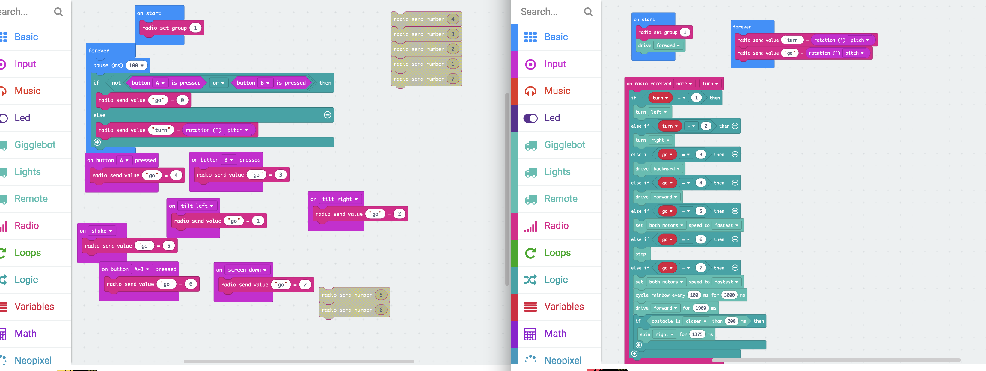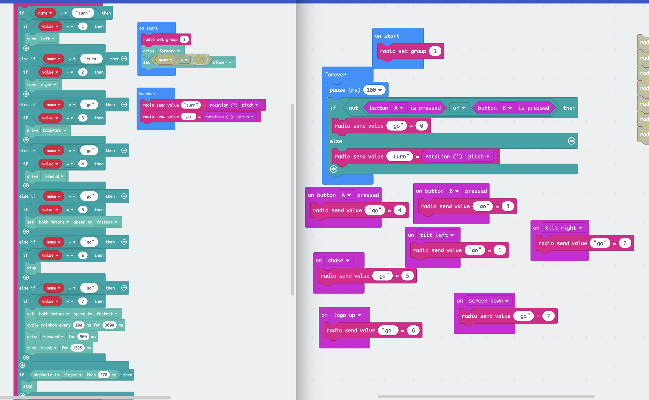 Then I tried a lot of time to make turning base on tilting degree happen, and the latest code I have is the one below.